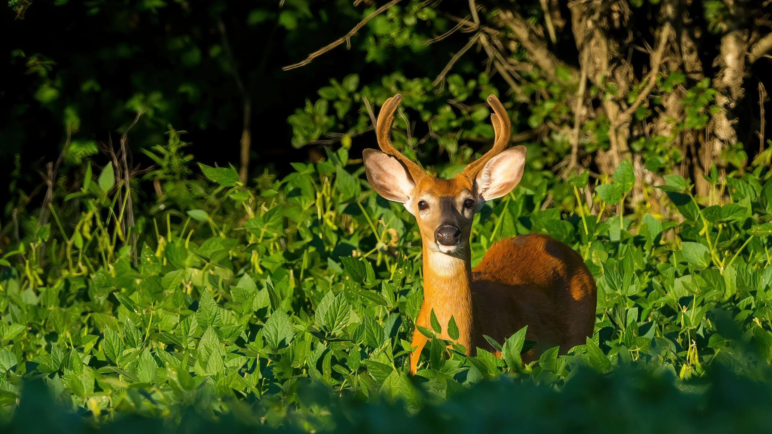 Young Buck with velvet covered antlers.