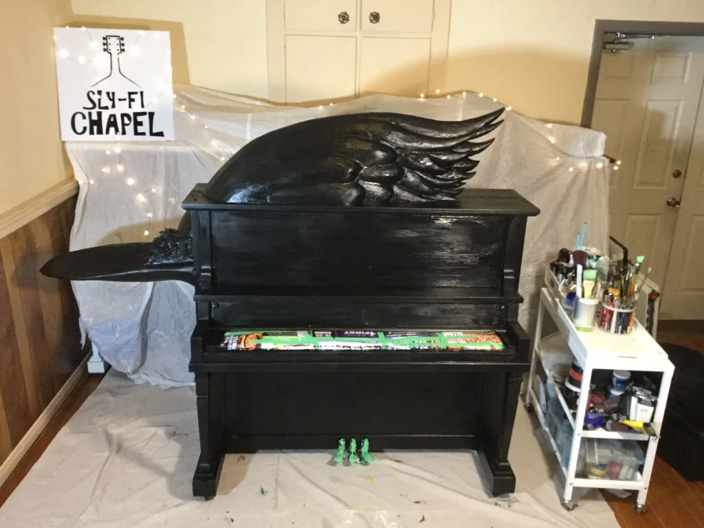 "I knew Arpejayo would be it, but it wasn't until I used Wikipedia to search the actual term—Arpeggio—that the real synergy became apparent," she tells PTBOCanada. "It's a 'broken chord' in music—I only work on broken pianos, and I work to make them new again to have a second life, with more potential for enjoyment and creativity. This piano turns 100 this year. It's had many lives before this one. I love that, that they're relics from another time. My wish is that the pianos continue to unite people from all walks of life and to create smiles, laughter, dancing and music for everyone."