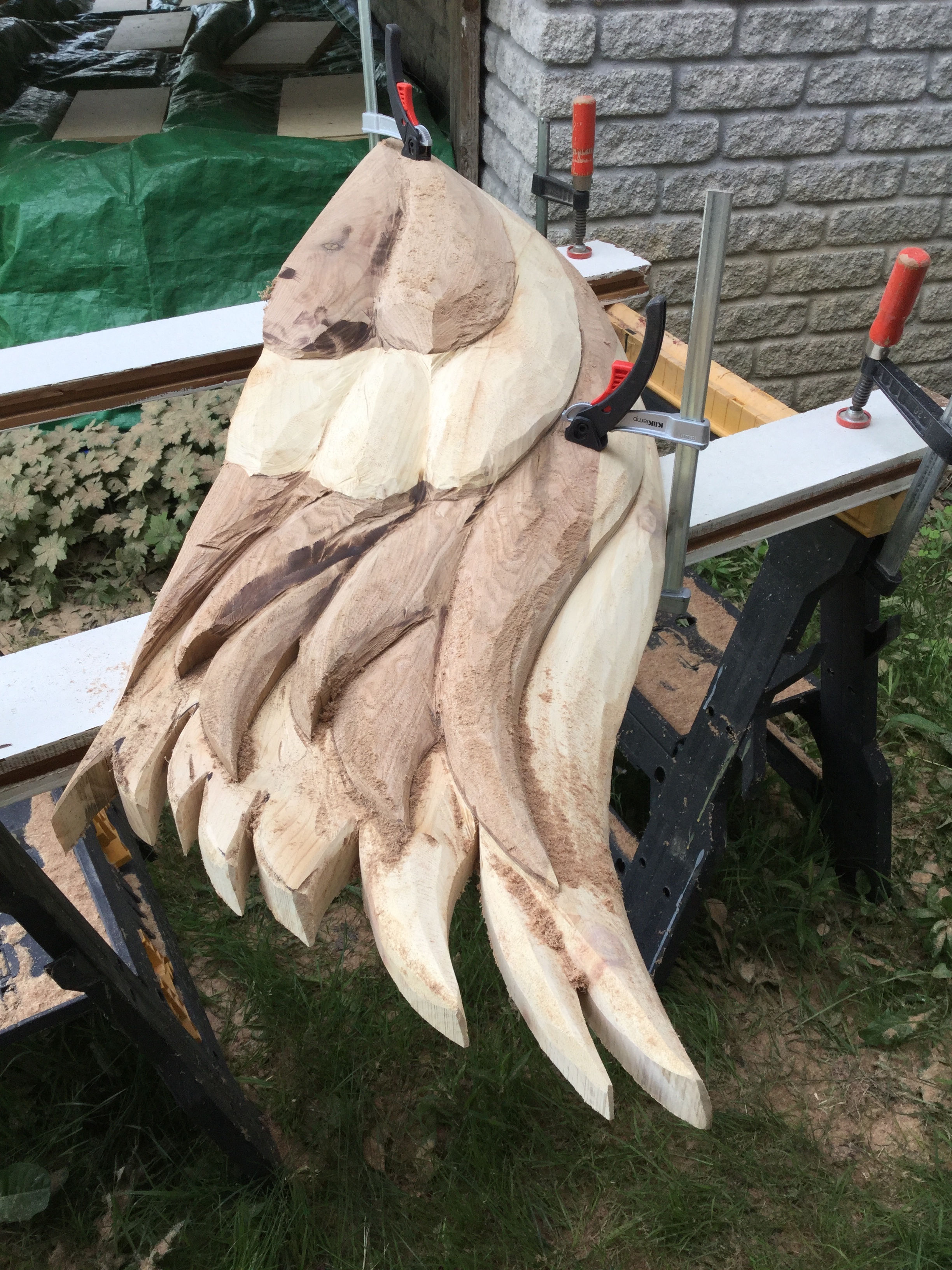 Then her drawing began to take shape in real life through a transformation in a chapel in Cobourg. "The piece took about 35 hours to complete, between hand carving with an angle grinder for the beak and top feathers, and then priming and painting," Dean tells PTBOCanada.