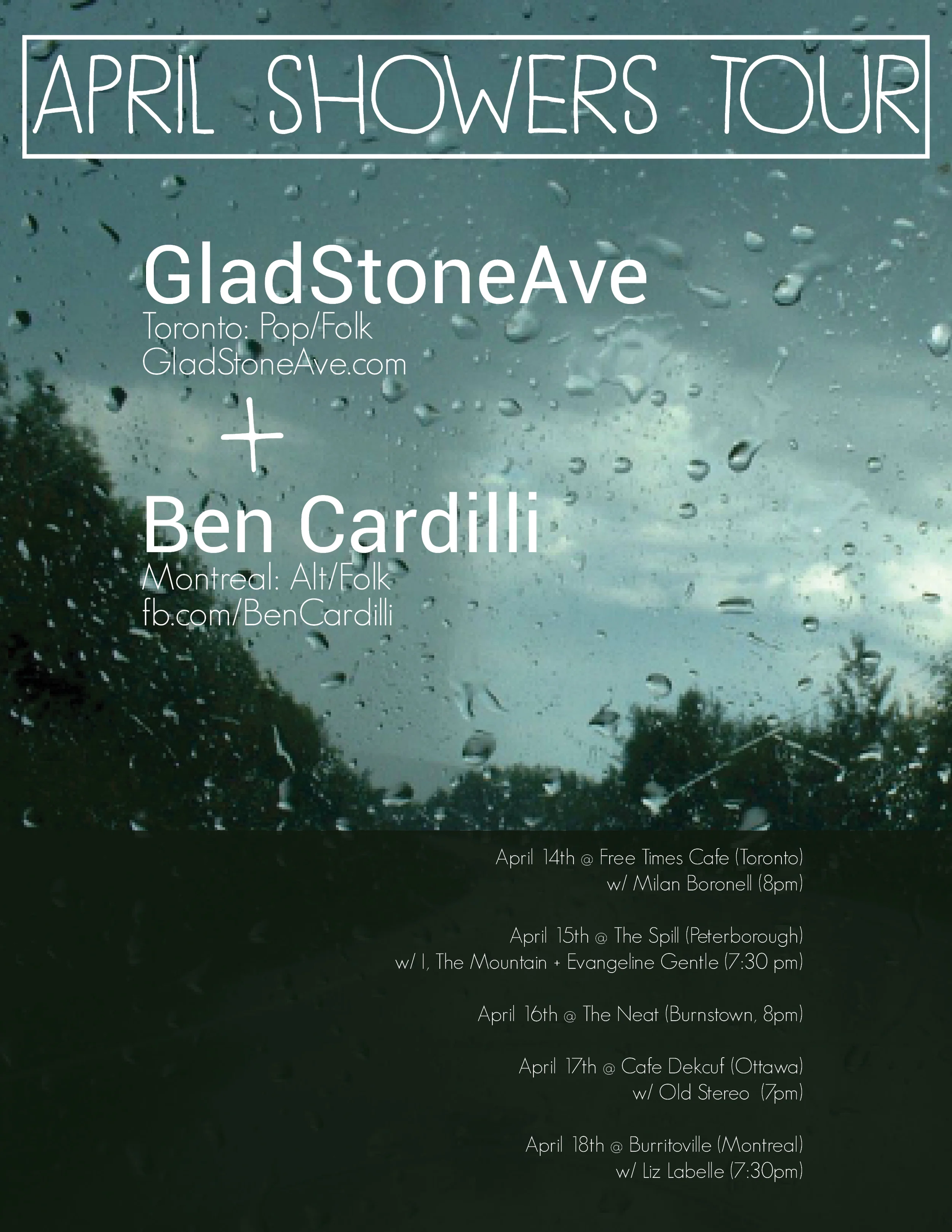 GladStoneAve is a new project based out of Toronto Ontario, fronted by local Fraser Holmes (guitar & vocal) and Lauren Roy (piano & vocal), along with drummer Rafael Rodriguez.. Their music is delivered almost entirely in duet format, rich in vocal harmony and choruses you can't help but want to sing along with.