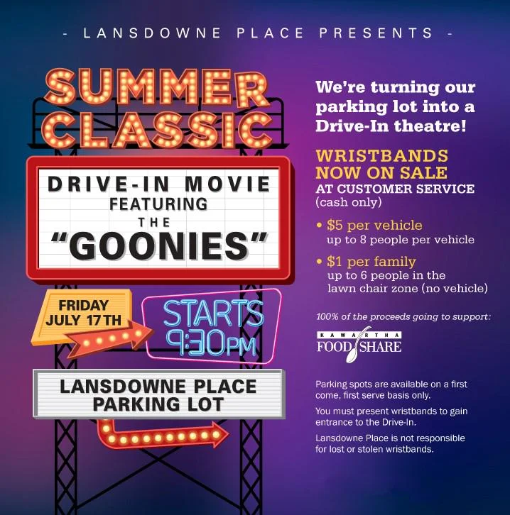 Lansdowne Place Presents: "The Goonies" Drive-In Movie Friday, July 17, 2015 9:30 PM 11:00 PM 21:30 23:00 Google Calendar ICS