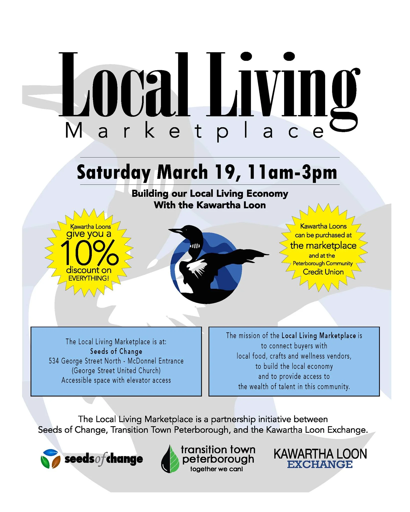 The Local Living Marketplace is a partnership initiative between Seeds of Change, Transition Town Peterborough and the Kawartha Loon Exchange.