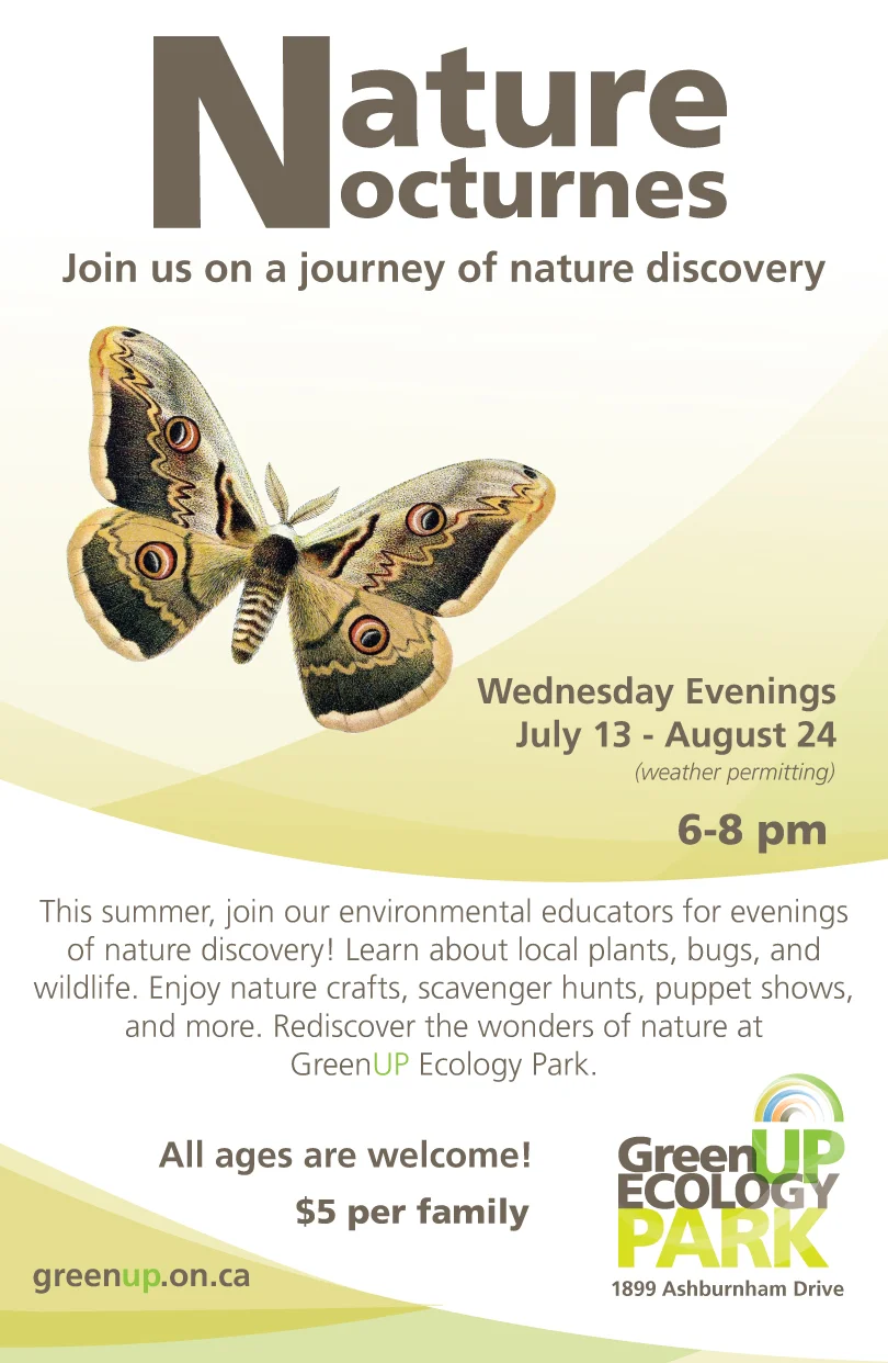 This summer, join GreenUp Ecology Park environmental educators for evenings of nature discovery! Learn about local plants, bugs, and wildlife. Enjoy nature crafts, scavenger hunts, puppet shows, and more. Rediscover the wonders of nature at GreenUP Ecology Park.