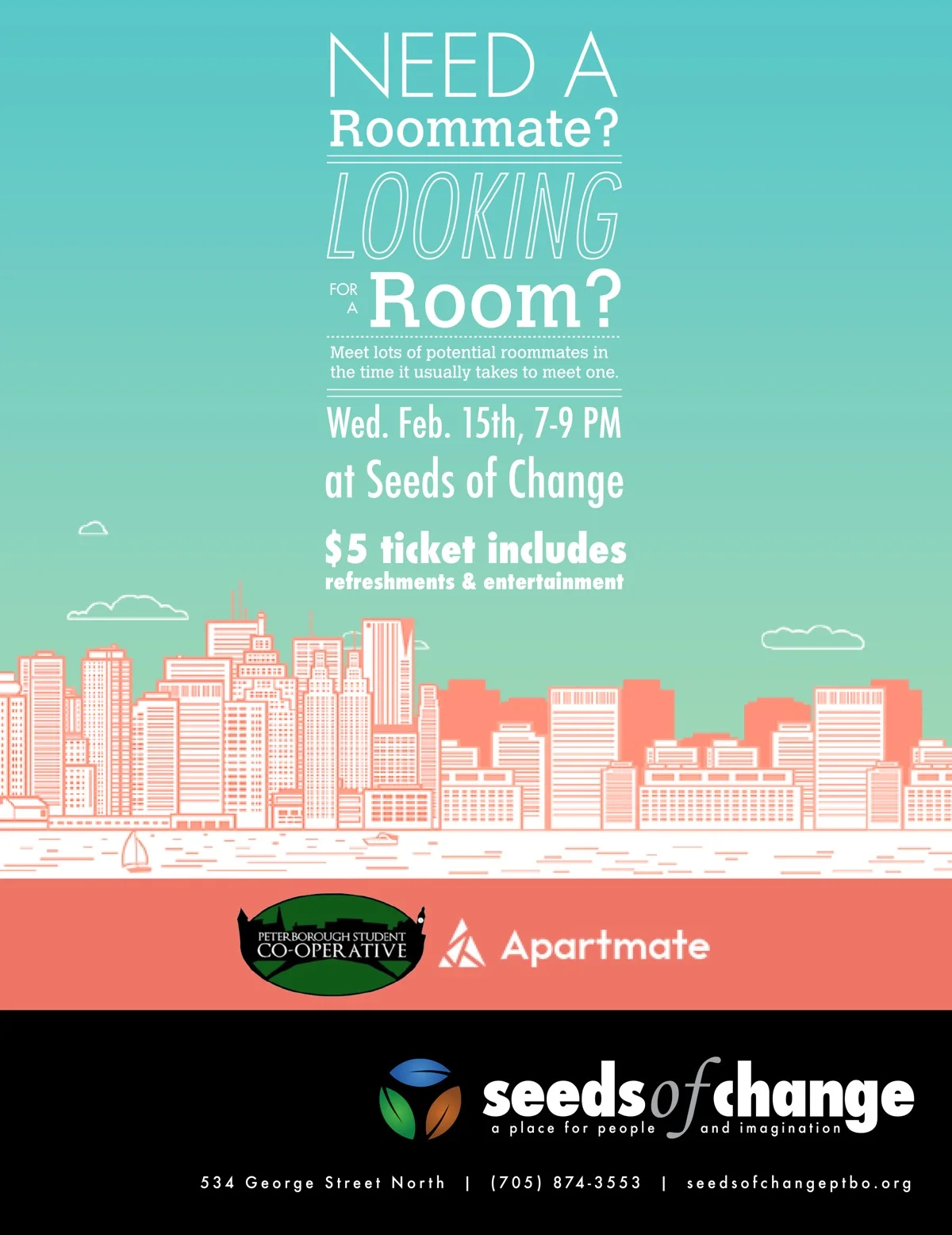 Your $5 ticket includes refreshments and entertainment, as well as resources to help you find a compatible roommate! Call 705-874-3553 to register.
