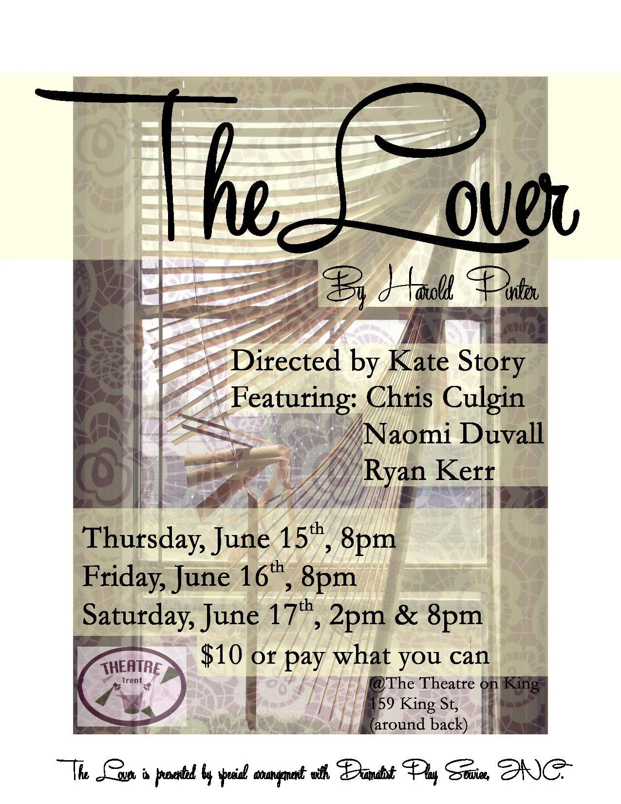The Theatre on King is excited to present Harold Pinter's "The Lover" from Thursday, June 15th through Saturday, June 17th @ 8pm. (bonus matinee on June 17th at 2pm) $10 or pay what you can at the door.